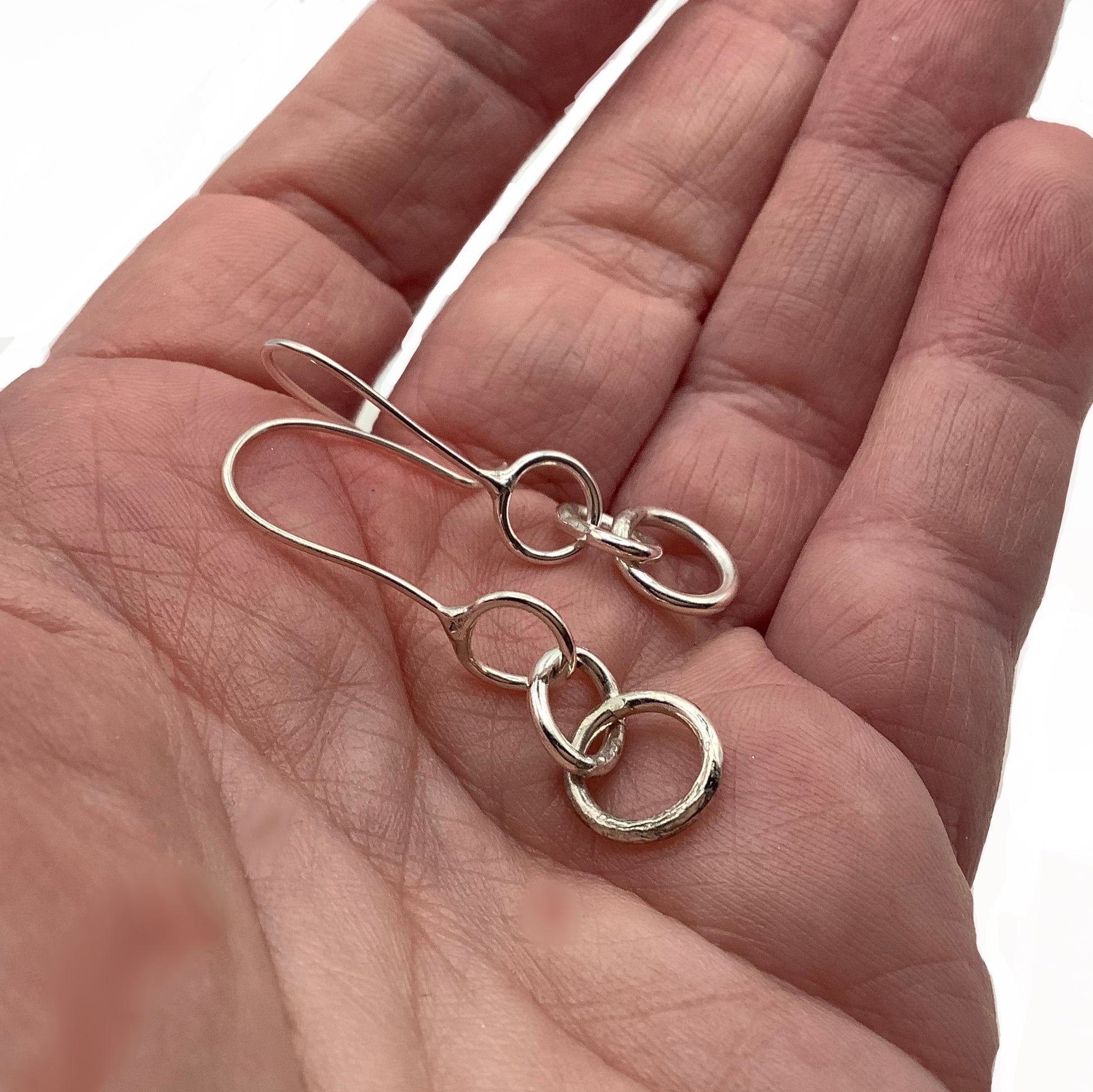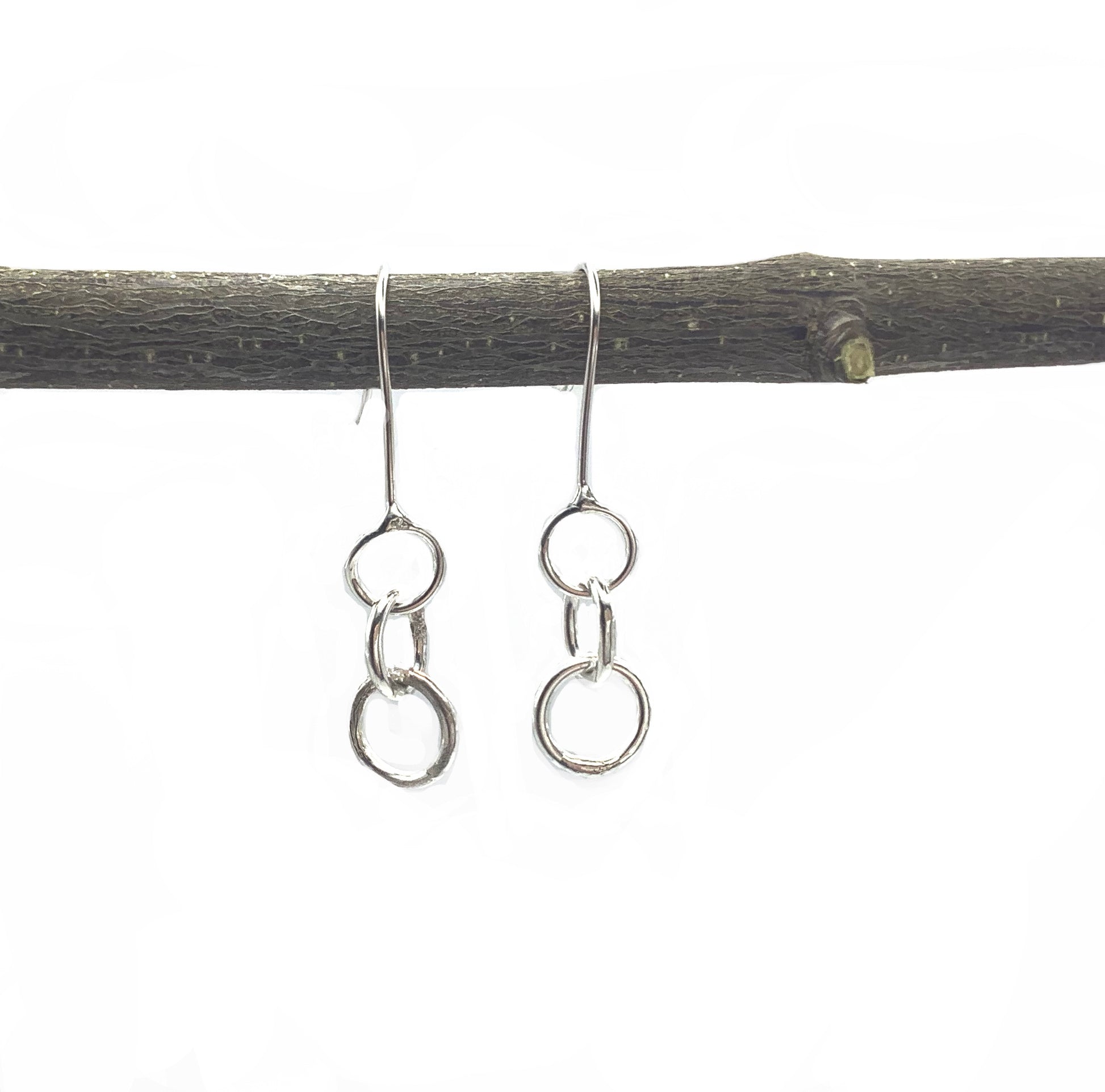 Sterling silver hoop earrings which dangle at 4cm long.